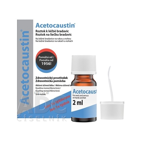 Acetocaustin roztok na liečbu bradavíc je zdravotnícka pomôcka na liečbu bežných bradavíc pre dospelých a deti od 4 rokov. Obsahuje kyselinu monochlóroctovú, ktorá má keratolytický účinok na pokožku, rozpustí bradavice vrstvu po vrstve a zabezpečuje zničenie buniek obsahujúcich vírus bradavíc.