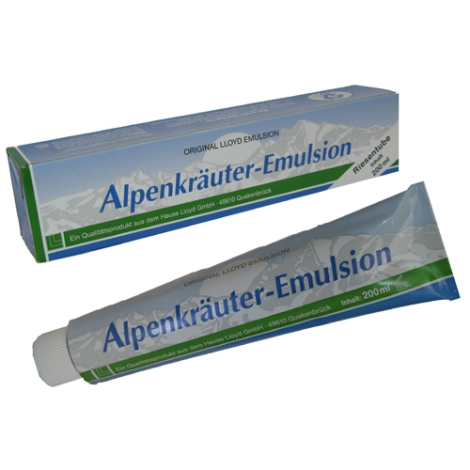 Charakteristika: Alpenkräuter emulsion je bylinná alpská emulzia, ktorá uvoľňuje bolesť kĺbov, stuhnuté svaly a bolesti hlavy. Alpská bylinková emulzia je vysoko kvalitný produkt z alpských byliniek a éterických olejov. Výborne pomáha pri bolestiach nervovo-svalových a chrbtovej bolesti v oblasti krížov. Pomáha pri zápalovej (kĺbovej) reume. Na hemeroidy, výborná na modriny, opary, pri nádche potierať oblasť pod nosom. Vhodné pri dennej starostlivosti o telo (osviežuje, posilňuje pokožku), uvoľnenie tela po kúpaní, klasická masáž, športová a reflexná. Ideálny na ošetrenie namáhaných, natiahnutých a bolestivých svalov. Všestranná emulzia na masáž po športe, na turistike. Na reflexnú masáž chodidiel, rúk, chrbtice. Príjemne chladí a občerstvuje celé bolestivé a unavené telo.