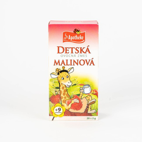 Charakteristika: APOTHEKE detský čaj malinový je určený deťom na bežné pitie. Svojou chuťou aj vôňou príjemne osviežuje a zaháňa pocit smädu. Určené pre deti od ukončeného 9. mesiaca.
