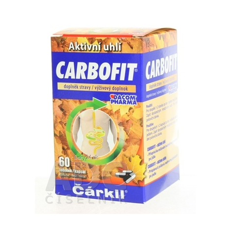 Výživový doplnok, aktivované drevené uhlie v kapsulách.