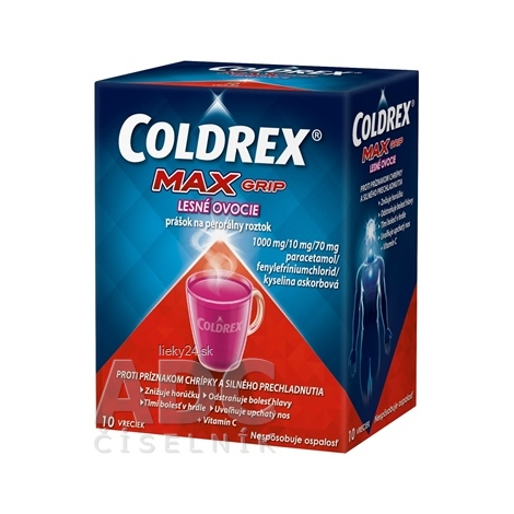 Charakteristika: COLDREX MaxGrip Lesné ovocie je určený na krátkodobú liečbu príznakov chrípky a akútnych zápalov horných dýchacích ciest, vrátane horúčky, bolesti hlavy, bolesti v hrdle, bolesti kĺbov a svalov, upchatého nosa, zápalu vedľajších nosových dutín a s ním spojenú bolesť a akútnej katarálnej nádchy. Pre dospelých a dospievajúcich od 15 rokov s telesnou hmotnosťou nad 65kg.