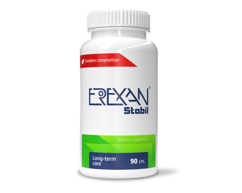 EREXAN Stabil je výživový doplnok vyvinutý špeciálne pre dlhodobú starostlivosť o plodnosť a normálnu funkciu reprodukčného systému mužov. Obsahuje Široký komplex účinných rastlinných extraktov, vitamínov a minerálov podporujúcich tvorbu testosterónu, ktorý je esenciou mužnosti.