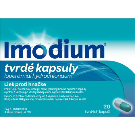 Indikácie: Imodium je liek proti hnačke. Imodium pri hnačke zvyšuje hustotu stolice a znižuje jej frekvenciu. Imodium môžete užívať pri náhlej (akútnej) alebo po porade s lekárom pri dlhotrvajúcej (chronickej) hnačke. Po porade s lekárom môžete Imodium užívať taktiež v prípade, keď vám bola odstránená časť čreva, čo často spôsobuje hnačku.