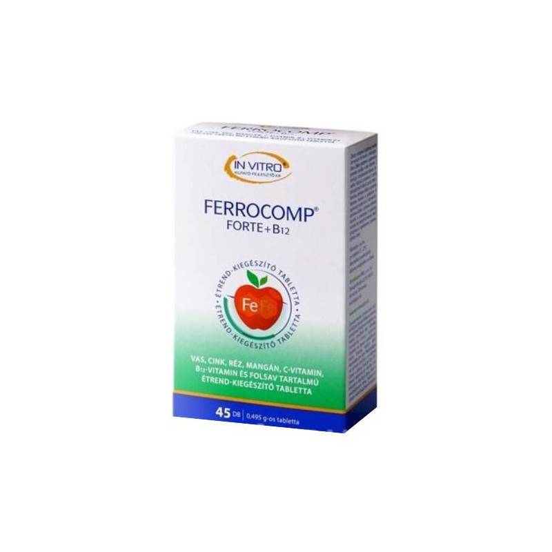 Ferrocomp forte + B12 je vyvážený výživový doplnok od značky InVitro, špeciálne navrhnutý na dopĺňanie železa a podporu zdravého krvotvorného systému. Kombinuje účinné zložky ako železo, vitamín C, vitamín B12, kyselinu listovú a dôležité minerály – zinok, meď a mangán – ktoré spoločne prispievajú k správnej funkcii imunitného systému, znižujú únavu a podporujú bunkový metabolizmus.