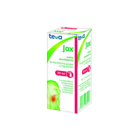 Indikácie: JOX sa používa na dezinfekciu ústnej dutiny a hltana pri zápalových a infekčných ochoreniach ‑ angínach, zápaloch hltana a (alebo) mandlí, zápaloch jazyka a aftoch, pri prvých príznakoch chrípkových ochorení (škriabanie v hrdle), pred chirurgickými výkonmi v dýchacích a prehĺtacích cestách a v pooperačnej starostlivosti, na liečbu infekcií v ústnej dutine u pacientov liečených cytostatikami. Ďalej sa používa pri angínach vyvolaných streptokokami, a to ako podporná liečba pri súbežnej liečbe antibiotikami. Hlavným liečivom je jódovaný povidón. Táto látka uvoľňuje pri kontakte s kožou a so sliznicou jód, ktorý ničí celý rad choroboplodných zárodkov (baktérie, plesne, niektoré vírusy. JOX je preto vhodný na dezinfekciu ústnej dutiny a hltana. JOX ďalej obsahuje alantoín, ktorý má protizápalové účinky.