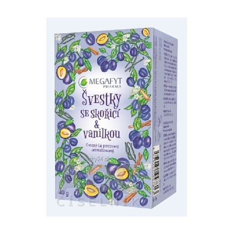 Ovocný aromatizovaný čaj s príchuťou slivky, škorice a vanilky, porcovaný v nálevových vrecúškach.