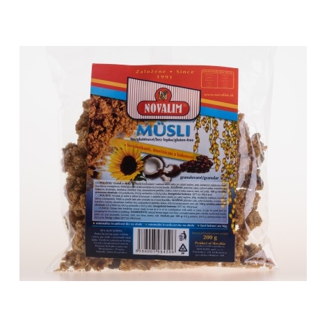 Charakteristika: BEZLEPKOVÉ MUSLI ZAPEKANÉ S HROZIENKAMI – výrobok určený k priamej konzumácii v suchom stave alebo po zaliatí teplým alebo studeným mliekom, ovocnou šťavou, kompótom a pod. Môže sa použiť aj ako posýpka na ovocné knedle. – vhodné ako posýpka na ovocné knedle.