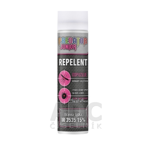 Charakteristika: PREDATOR REPELENT JUNIOR 15% je vysoko efektívny pre dlhší pohyb v prírode a pri zvýšenej fyzickej záťaži. Je jemne parfumovaný, pre deti od 3 mesiacov. Poskytuje miernu ochranu proti slnečnému žiareniu. Doba účinnosti minimálne 4 hodiny.