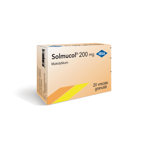 Indikácie: Solmucol obsahuje N-acetylcysteín, ktorý má depolymerizujúci účinok na mukopolysacharidy a vlákna DNK, čím rozpúšťa všetky druhy molekúl zodpovedné za väzkosť hlienu. N-acetylcysteín pôsobí antioxidačne a tým podporuje obranné mechanizmy organizmu. Solmucol je vhodný pri všetkých ochoreniach horných a dolných dýchacích ciest, sprevádzaných intenzívnou tvorbou hustého väzkého hlienu, akútna a chronická bronchitída (zápal priedušiek), na doplnkovú liečbu laryngitídy (zápal hrtana), tracheitídy (zápal priedušnice), sinusitídy (zápal prínosových dutín), otitis media (zápal stredného ucha), mucoviscidózy (cystická fibróza), astmy bronchiale ( priedušková astma), bronchiolitídy (zápal priedušničiek), emfyzémy (rozdutie pľúc).