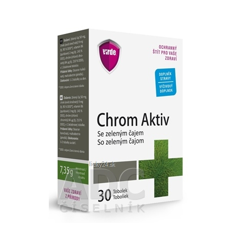 Výživový doplnok s obsahom zeleného čaju 50 mg, chrómu (chlorid chromitý) 84 µg, vitamín B6 (pyridoxín) 2 mg, zinok (oxid zinočnatý) 9 mg.