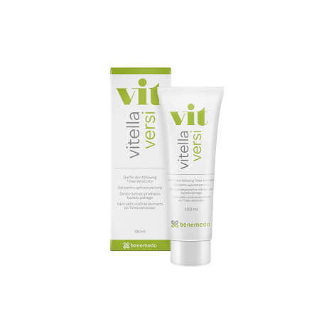 Spôsob použitia: Používajte na postihnuté miesta raz denne. Vmasírujte do pokožky (1–2 minúty). Pred použitím prípravku odporúčame umyť pokožku sprchovým gélom Mediket Versi. Používajte Vitellu Versi po dobu 3–4 týždňov, následne používajte Mediket Versi po dobu ďalších 4–5 týždňov.