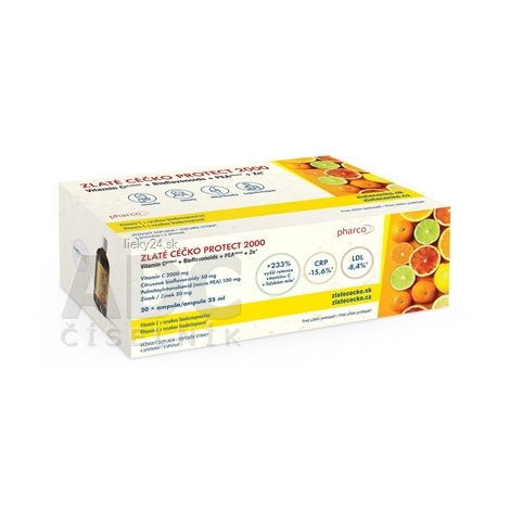 Zloženie: Množstvo účinných zložiek v dennej dávke: 1 ampula (25 ml): Vitamín C 2000 mg (2500% NRH), Citrusové bioflavonoidy 50 mg, Palmitoyletanolamid (micro, PEA) 100 mg, Zinok 20 mg (200% NRH). (NRH – nutričná referenčná hodnota)